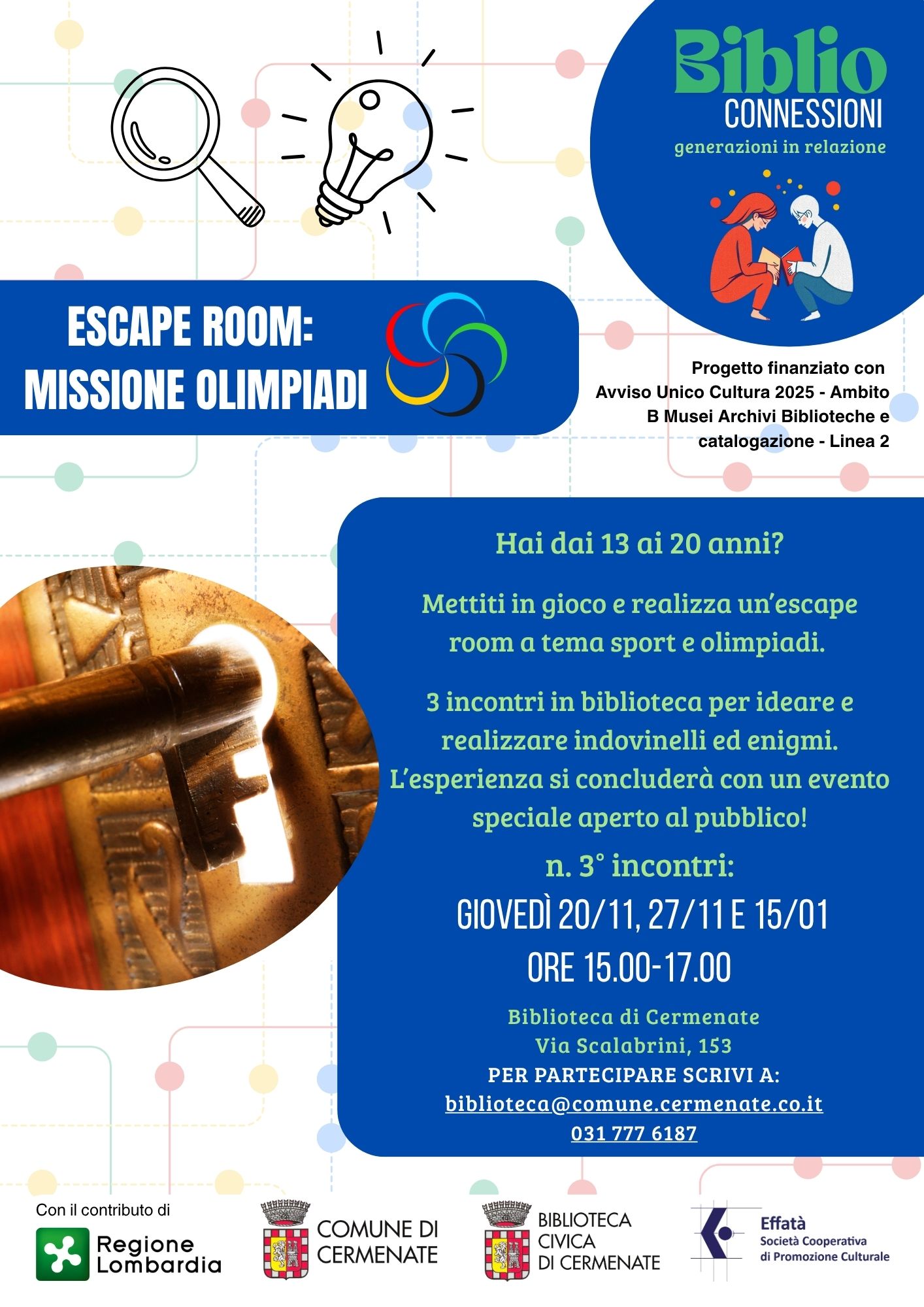 "BiblioConnessioni: generazioni in relazione" – iniziativa Escape Room Missione Olimpiadi
