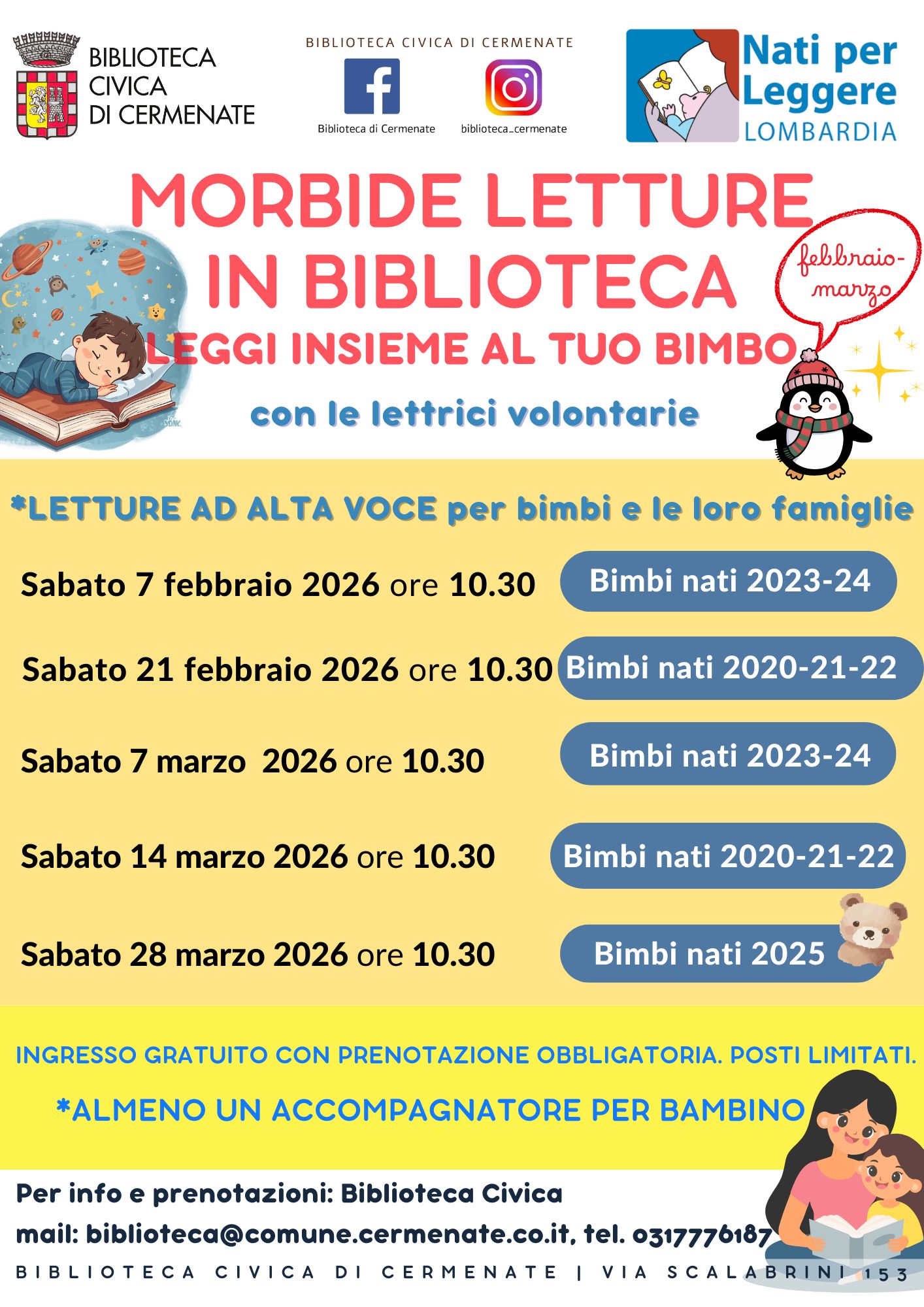 Info e prenotazioni mail : biblioteca@comune.cermenate.co.it